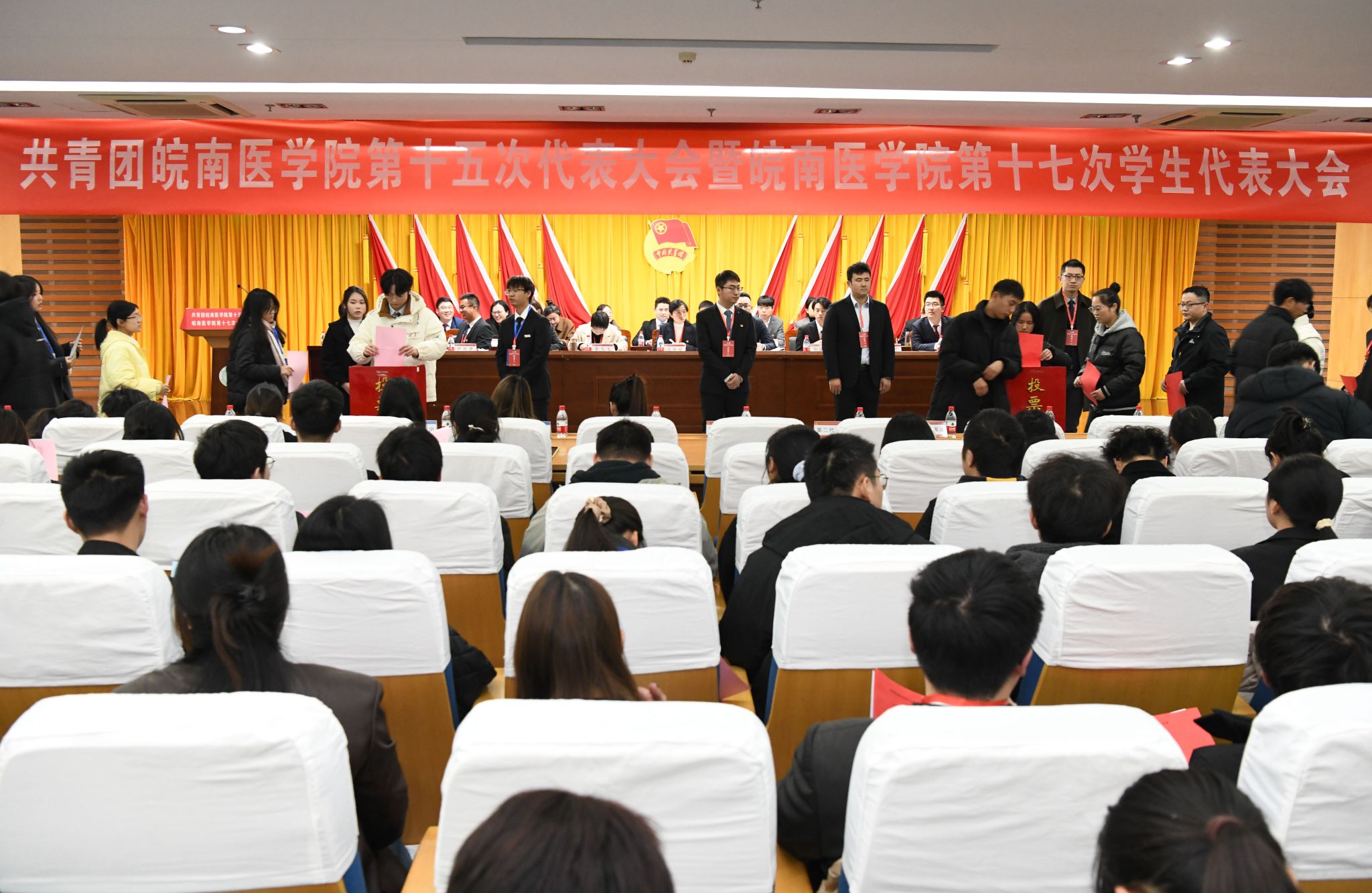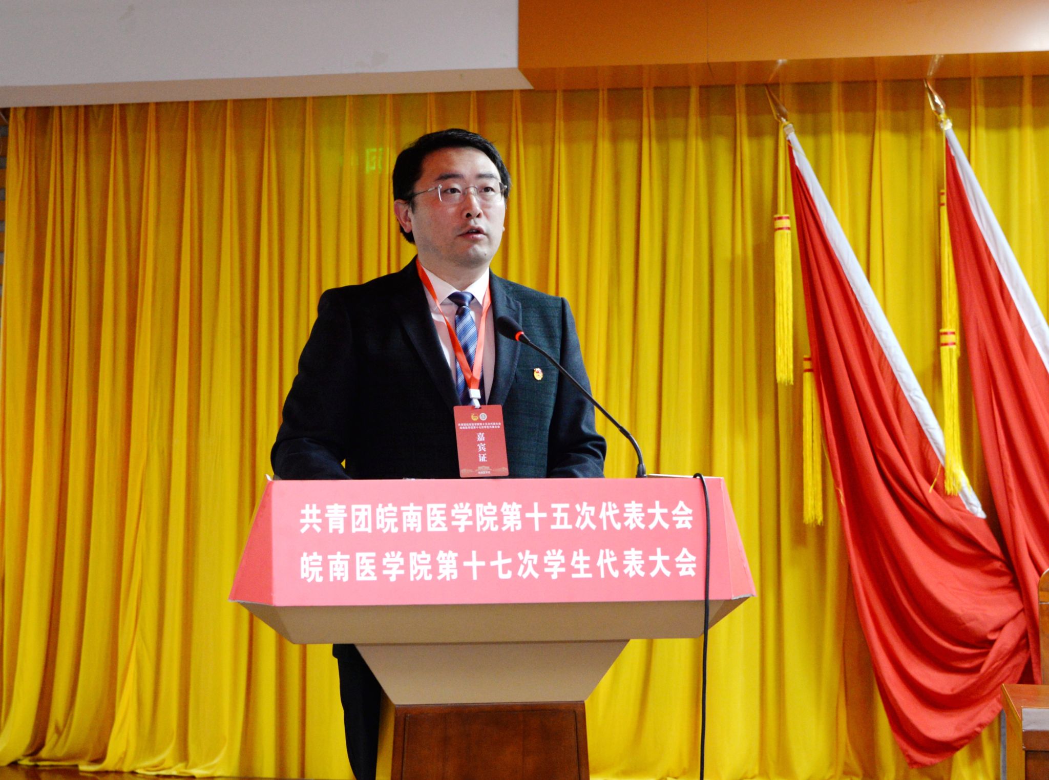 周宇代表团省委、省学联向大会的胜利召开表示热烈祝贺,向全校广大团员青年致以诚挚的问候。他充分肯定了近年来皖医共青团工作取得的成绩,并对全校团员青年、团学干部和团学组织提出四点希望:一要坚定理想信念,做有远大志向的新时代青年,深刻认识医者仁心的责任,敬佑生命、救死扶伤,努力成为“敢为人先、甘于奉献”的医学人才,把青春和智慧奉献给党和人民需要的地方;二要厚植家国情怀,做有担当精神的新时代青年,将“小我”融入“大我”之中,将医学知识与实际需求相结合,积极投身社会实践,扎根人民、服务基层,为推进健康安徽、健康中国作出积极贡献;三要勇攀知识高峰,做有真才实学的新时代青年,抓住宝贵的学习机会,注重“学术钻研”“科技创新”与“实践能力”的相互融合,听从名师教诲,精研医学知识,提升综合素质,全面成长成才,争做学科建设的追梦者、现代医学的开拓者;四要锤炼意志品质,做有坚强品格的新时代青年,要锤炼不畏艰难、迎难而上的精神品质,要有“舍我其谁”的胆识和“咬定青山”的韧劲,将自己的奋斗历程融入国家繁荣、社会稳定、民族复兴的伟大征程中。