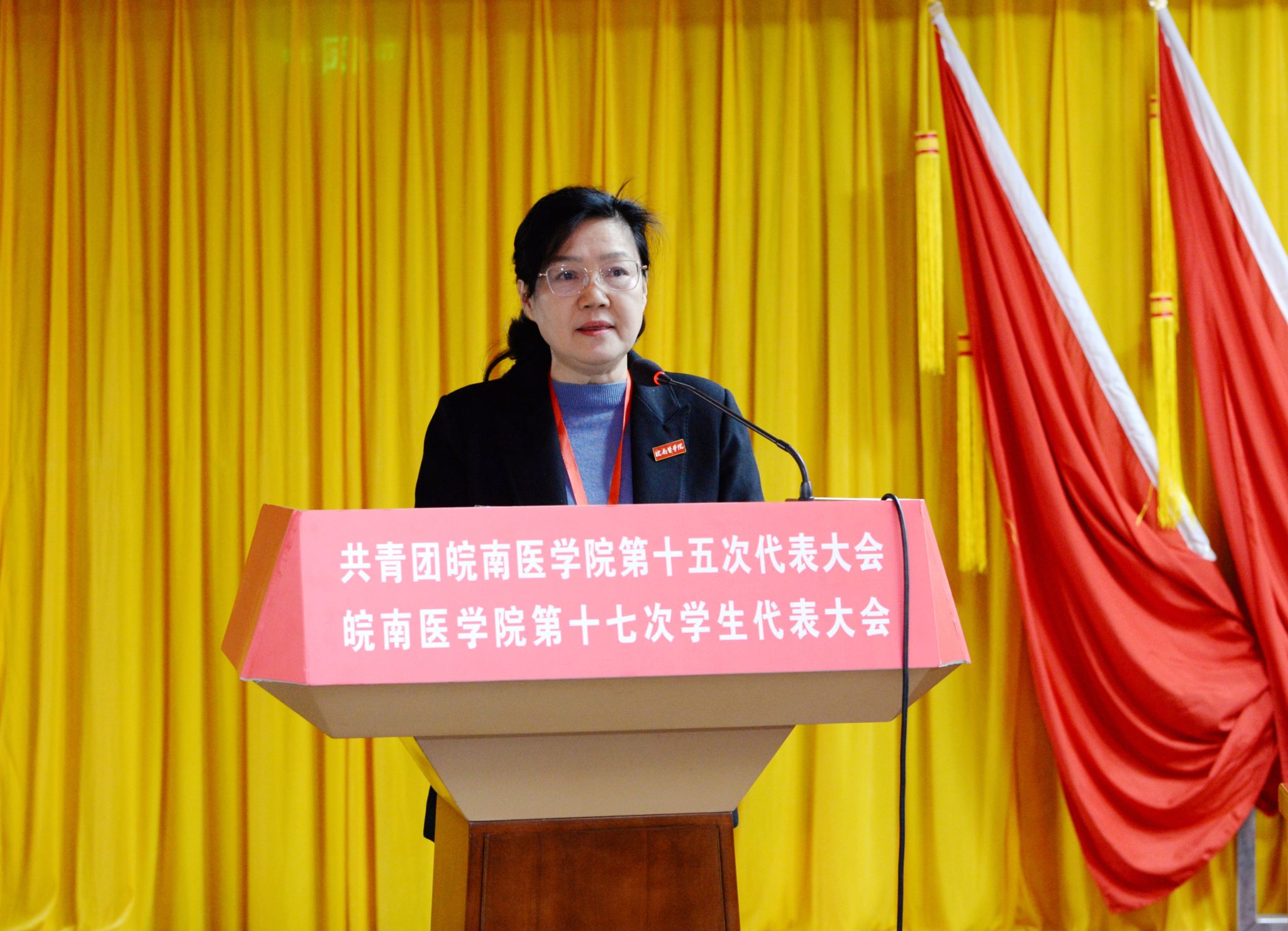 夏劲松代表学校党委向大会的召开表示热烈祝贺,向全校广大团干部和团员青年致以亲切的问候,向一直以来关心支持学校共青团工作的上级团组织领导表示热烈的欢迎和衷心的感谢。她对学校共青团事业发展和青年成长提出三点希望:一要以更高的站位看待团学事业,以习近平新时代中国特色社会主义思想引领青春航向,做对党忠诚、政治过硬的“青年先锋队”,学会用马克思主义的立场、观点、方法,观察、分析和解决实际问题,讲好党的故事,感悟思想的力量,将个人奋斗的“小目标”融入国家发展和学校改革的“大蓝图”;二要以更实的举措做好团学工作,在高水平医科大学建设的征程上汇聚青春力量,做苦练本领、能力过硬的“青年实干家”,下得苦功夫,求得真学问,身披“医学绿”,扎根“泥土黄”,带动身边青年向上向善、向阳奋进,推动共青团和学生会新发展新进步;三要以更严的标准当好团学干部,以共青团和学生会纵深改革的要求擦亮青春底色,做精神昂扬、作风过硬的“青年主力军”,坚持自我革命,从严治团、从严治会,坚持心系青年,融入青年,保持朝气蓬勃,展现清风正气,永葆团学干部应有的清澈和纯粹,在助力学校高质量发展的奋斗中,用青春、智慧和力量书写无愧于时代召唤、无愧于党的信任、无愧于师生期待的满意答卷。