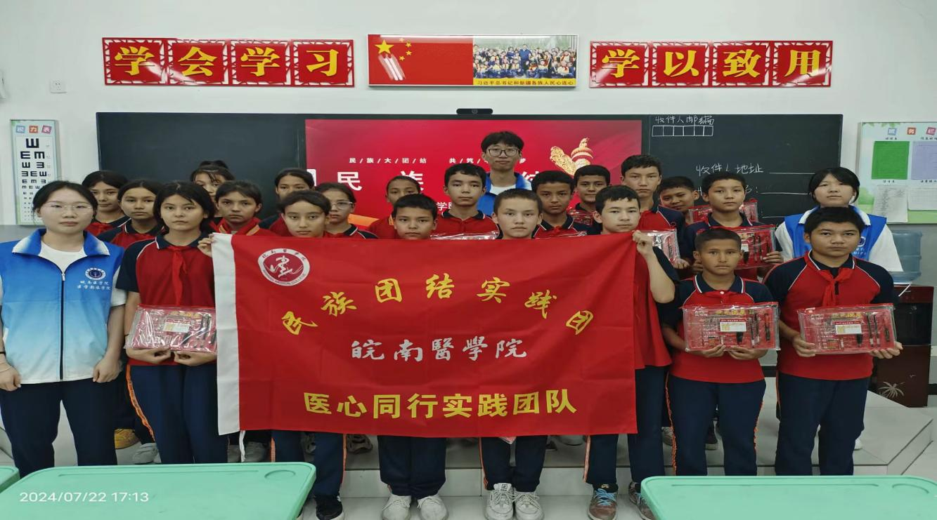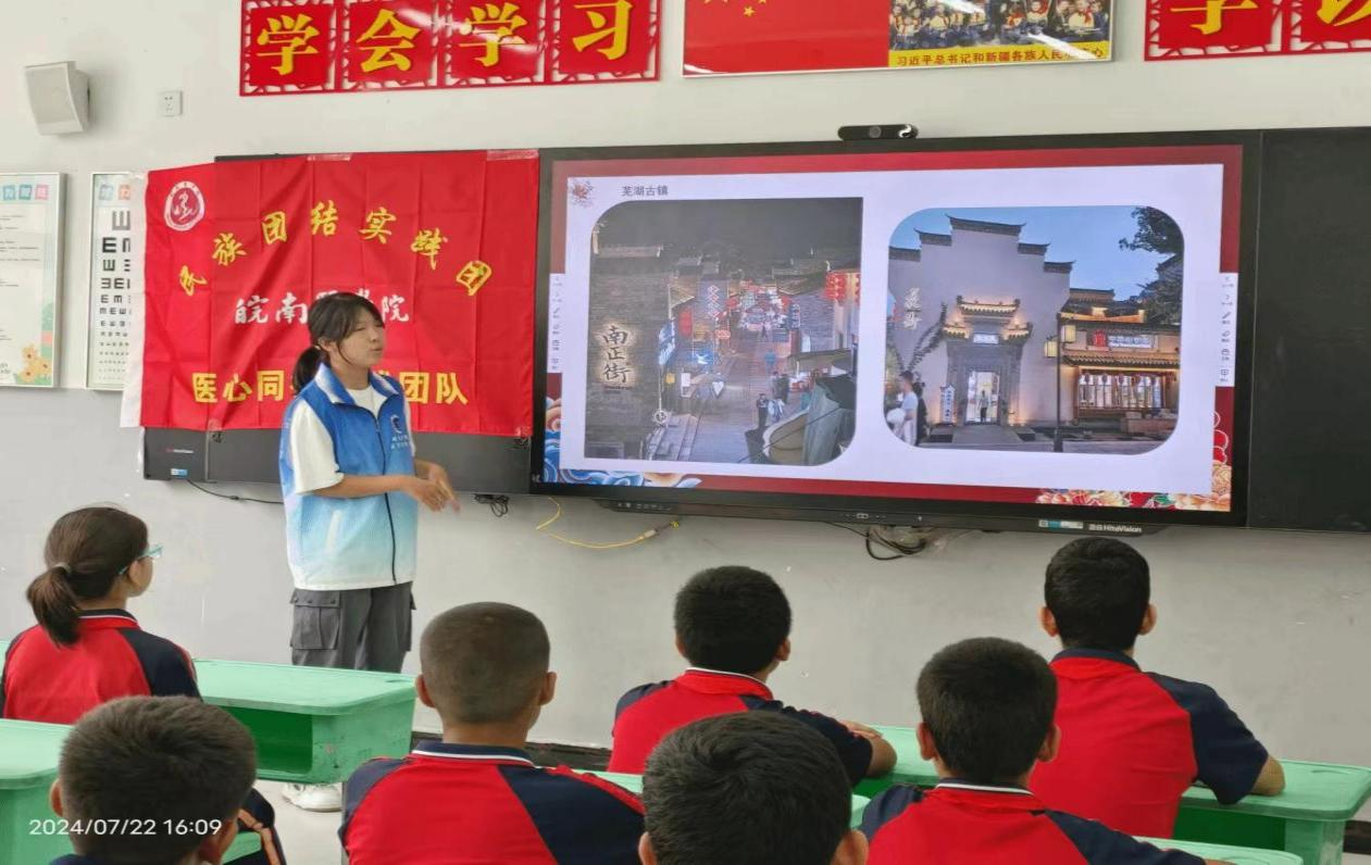 2024年暑假期间,“医心同行”实践团队成员怀揣梦想与热情开启了青春“乡”约和田·石榴籽祖国行暑期“三下乡”实践之旅。他们走进当地小学,通过生动有趣的课堂形式,宣传安徽之美,展现了祖国地域的多样性与文化的丰富性。同时,团队以书信联络为纽带,为安徽与新疆两地的小朋友搭建起互动沟通的桥梁,激发他们对中华民族的认同感和对祖国大好河山的热爱之情。此外,团队走进和田市博物馆参观调研当地文化遗产,了解新疆深厚的历史底蕴和多元的文化特色,进一步增强了文化自信,深刻体会到中华民族共同体意识的丰富意涵。本次活动受到人民视频、中安教育网、中华网等多家媒体报道,在当地和我校引起强烈反响。