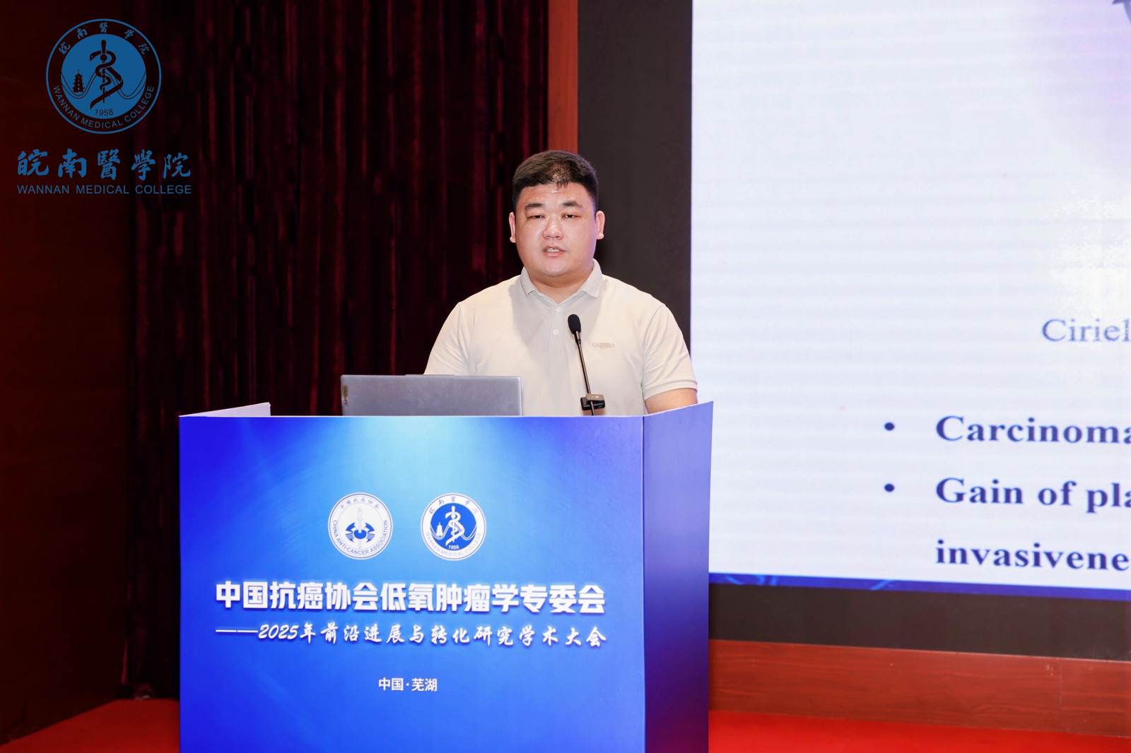 大会主席、我校知名校友朱卫国教授作主旨报告,重庆大学徐波、瓯江实验室黄传书、中山大学黄蓬等12位专家学者作特邀报告。青年学者报告专场以“低氧肿瘤生物学基础与临床转化”为主题,旨在为青年科研人员、博士后、博士及硕士研究生提供高水平学术交流平台,来自同济大学、郑州大学和南京医科大学等知名高校的8位青年学者围绕肿瘤低氧微环境、分子机制、靶向治疗、免疫调控等多个前沿方向汇报了自己的最新研究成果。