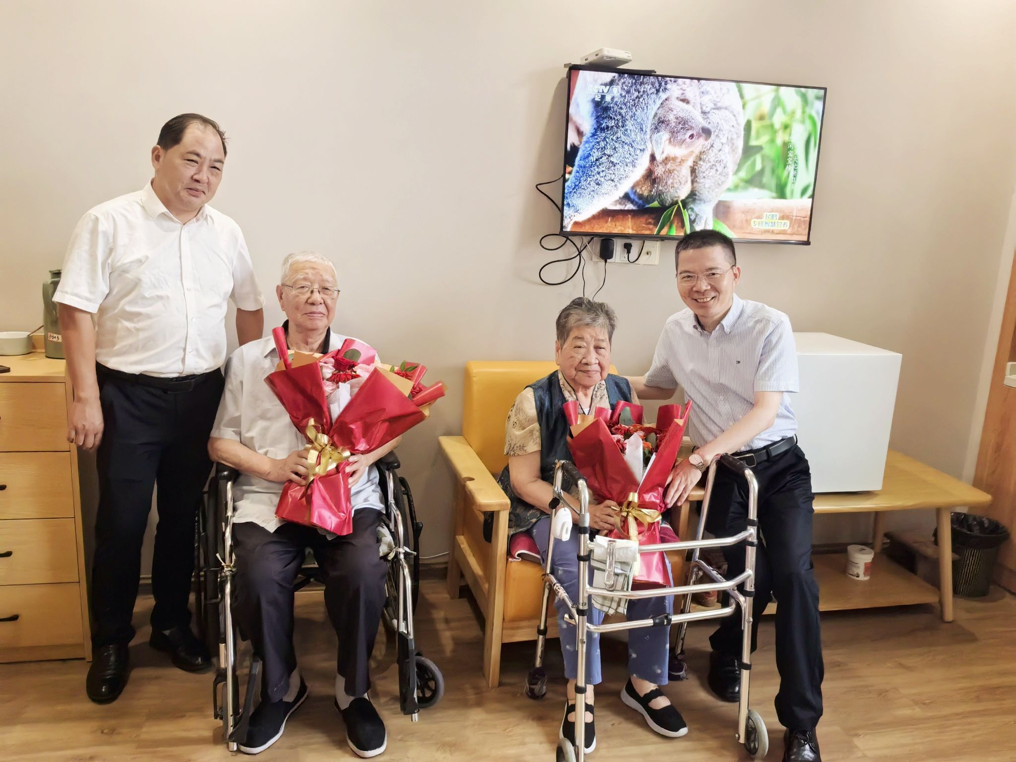 党委副书记、院长姚应水慰问国务院政府特殊津贴专家、退休教师代表邱世聪(右二)