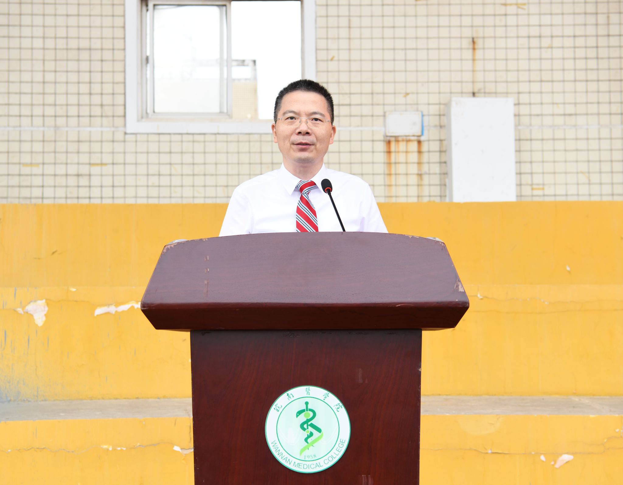 党委副书记、院长姚应水代表学校向全体2025级新同学致以热烈的欢迎和诚挚的祝贺。他指出,同学们在中国人民抗日战争暨世界反法西斯战争胜利80周年特殊时刻入学,更应铭记历史、传承精神,从中国共产党百年奋斗史和抗战胜利的宝贵经验中汲取智慧和力量,深刻体悟医者担当与家国情怀。