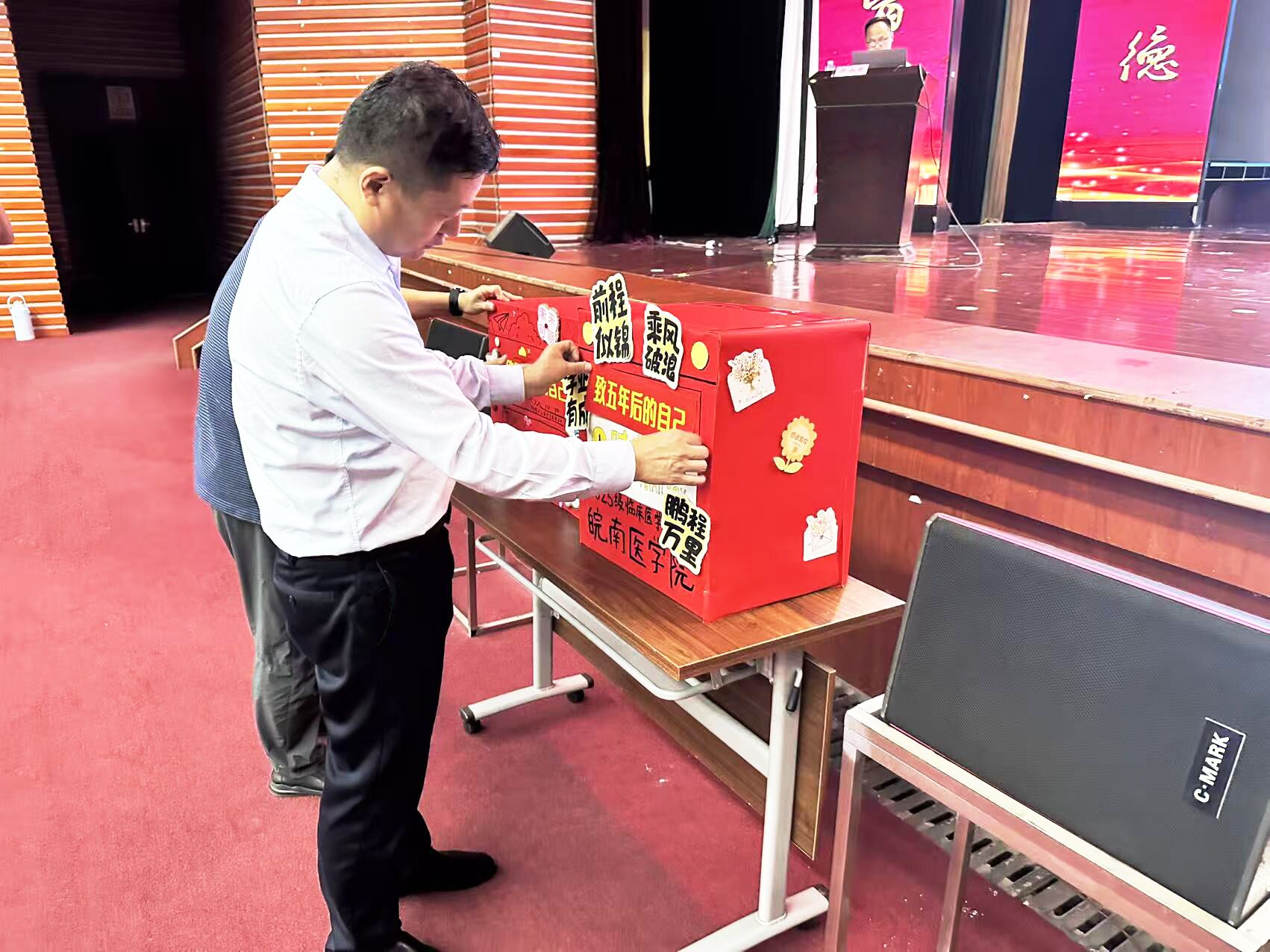 不负赶路人,未忘来时路。为引导新生同学们勇毅前行、不忘初心,临床医学院还组织同学们开展“时光邮局”活动,给四年或五年后毕业时的自己写了一封“时光信笺”,现场投递到“时光邮箱”中。投递结束后,韩永升与学院负责人为“时光信笺”进行封箱,待同学们毕业时开启,回望来时路。