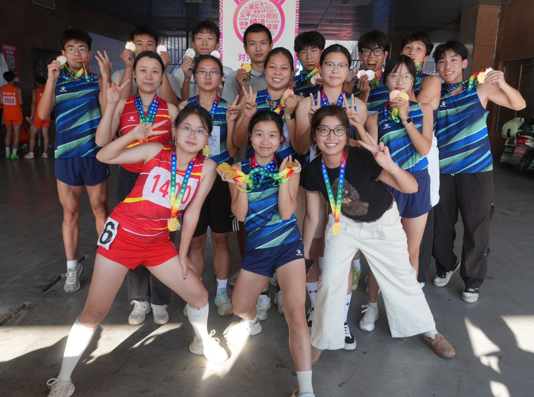 今日,芜湖市第十五届运动会田径比赛落下帷幕。我校运动健儿凭借顽强的拼搏精神、出色的竞技水平和良好的道德风尚,一举斩获8枚金牌、9枚银牌、6枚铜牌,并以团体总分第一名的优异成绩,创造了耀眼的战绩。