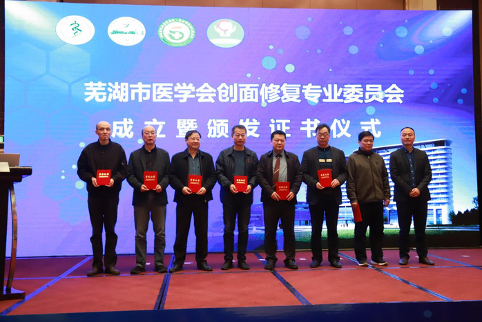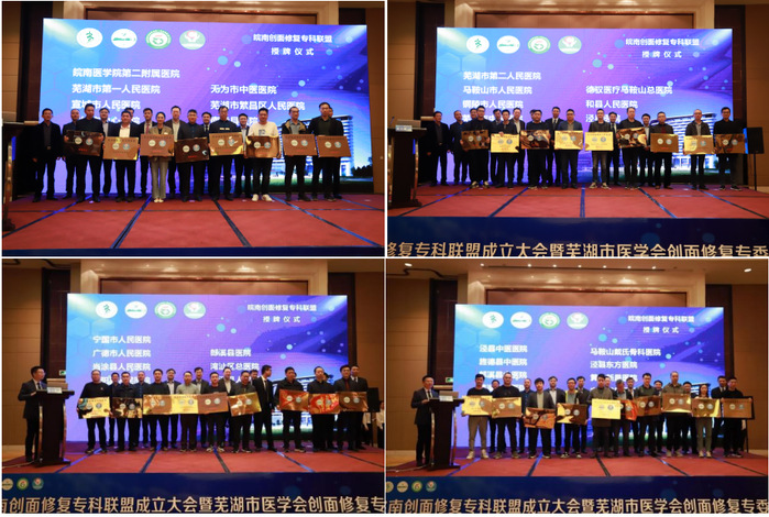 会议期间举行皖南创面修复专科联盟成员单位授牌、芜湖市医学会第一届创面修复专业委员会成立仪式。