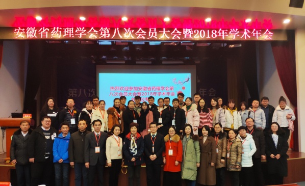 由安徽省药理学会主办、安徽医科大学承办的“安徽省药理学会第八次会员大会暨2018年学术年会”于2018年12月8日-9日在合肥市召开,我校药学团队一行50余人在药学院院长韩军的带领下参加了会议。